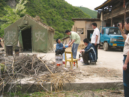 3個查勘小組,第二天早晨便出發趕往寶雞。19日,他們又組織第二批查勘人員前往寶雞查勘災情。當時由于余震不斷,查勘人員只能露宿在廣場或野外,但是沒