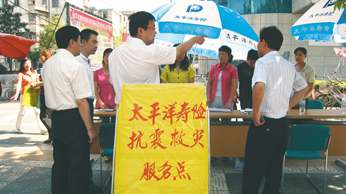 “一手抓保險理賠,一手抓業務發展”的工作要求,在全轄大力開展“眾志成城、愛心傳遞”活動。公司從所售保單中按一定比例提取資金籌集“太平洋壽險員工愛