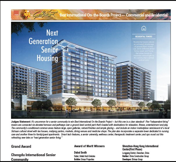 太保家園?成都國際頤養(yǎng)社區(qū)設(shè)計方案榮膺美國第56屆金磚獎“最佳國際在建項目”大獎